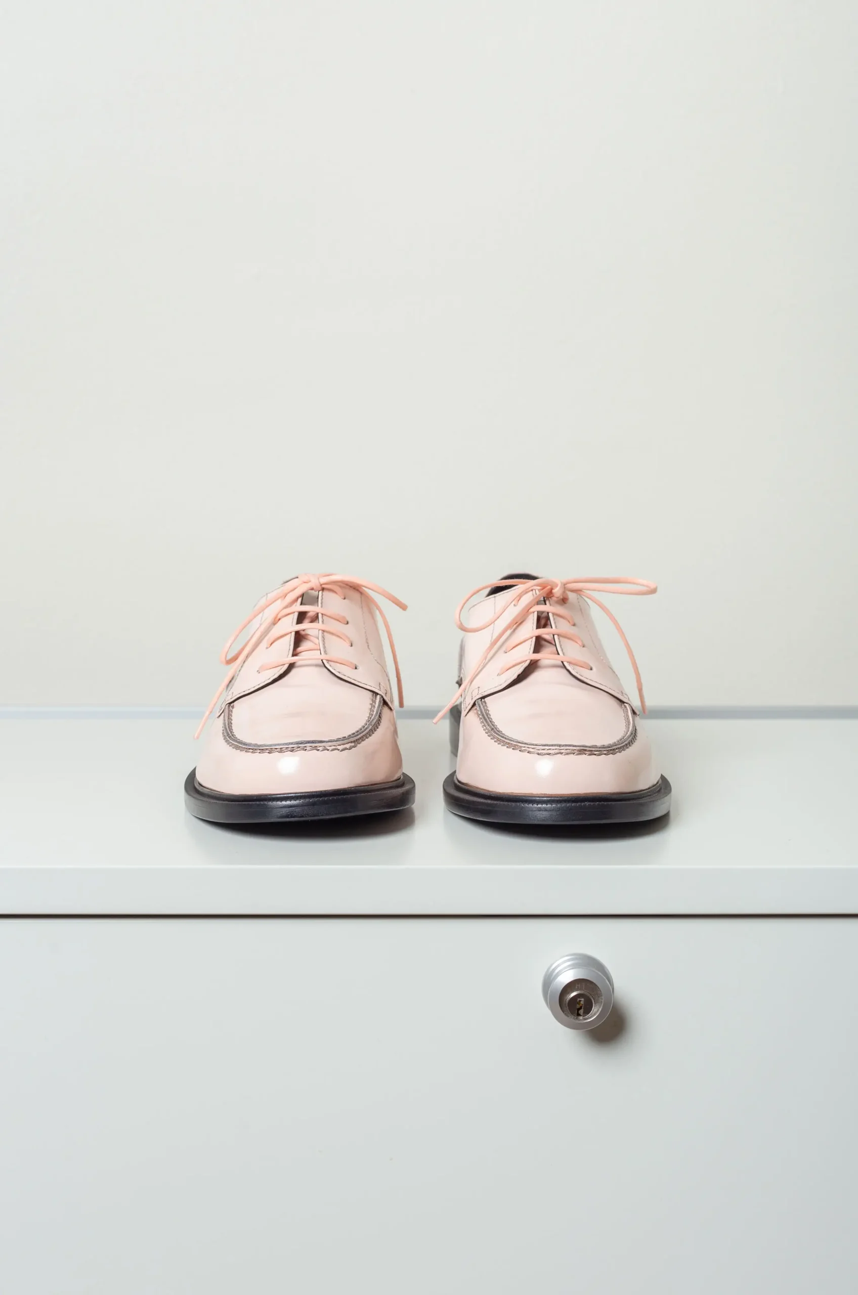 Lace-up derbies in glacé leather.