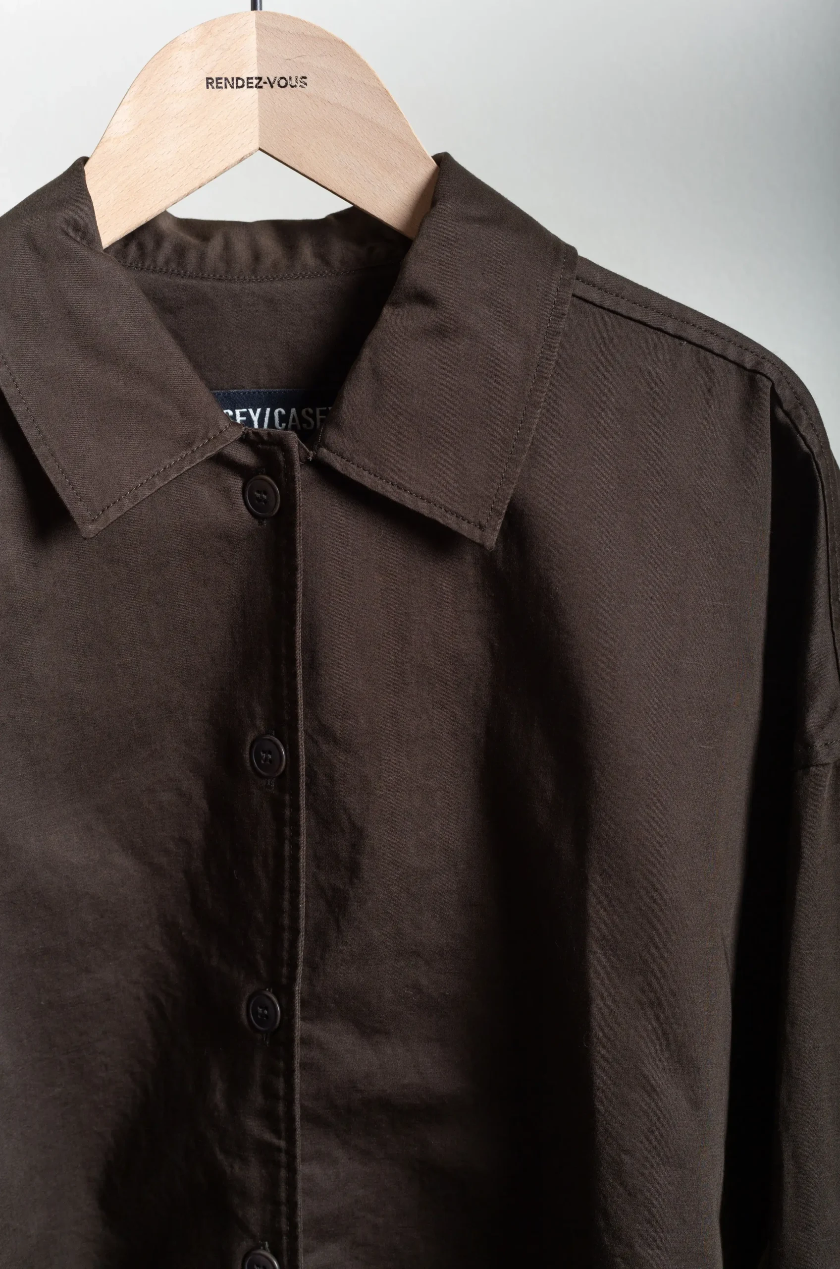 The Casey Casey Juliette Shirt in Dark Khaki stands out for its unique blend of minimalism, functionality, and timeless elegance.