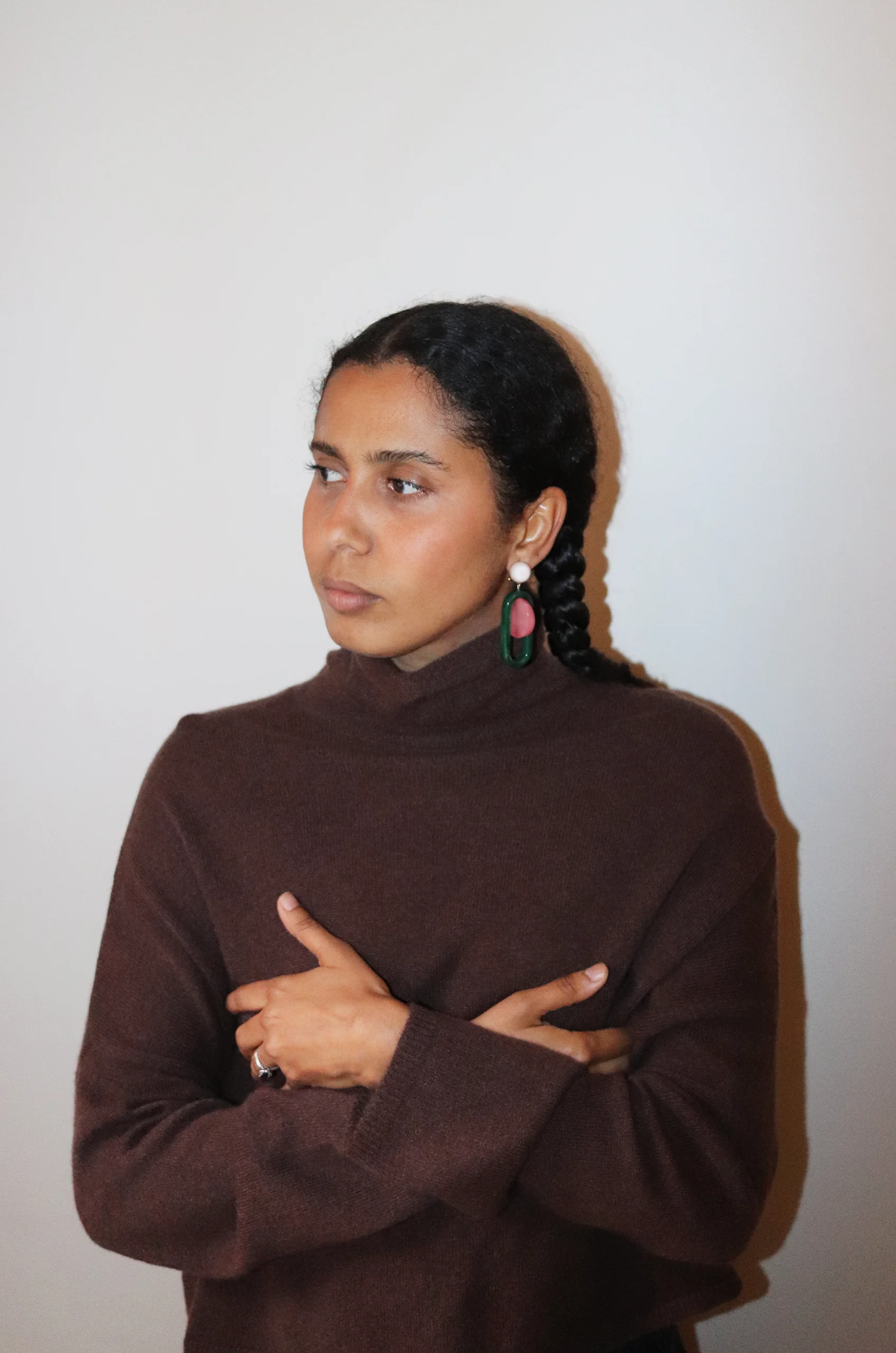 A pop of mixed metals elevate these sleek and modern earrings by Rachel Comey.
