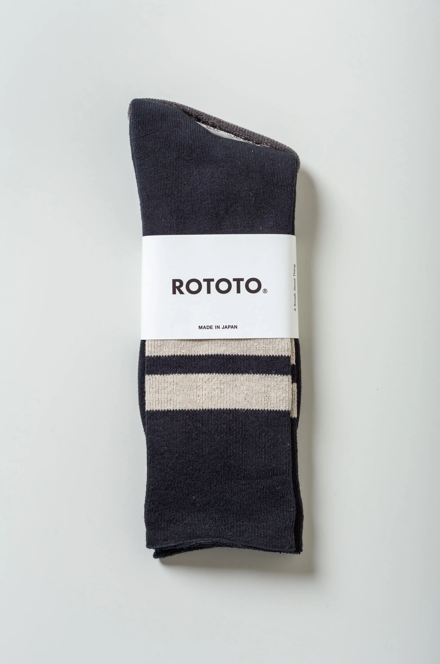 Rototo Fine Pile Striped Crew Socks Black/Raw Beige