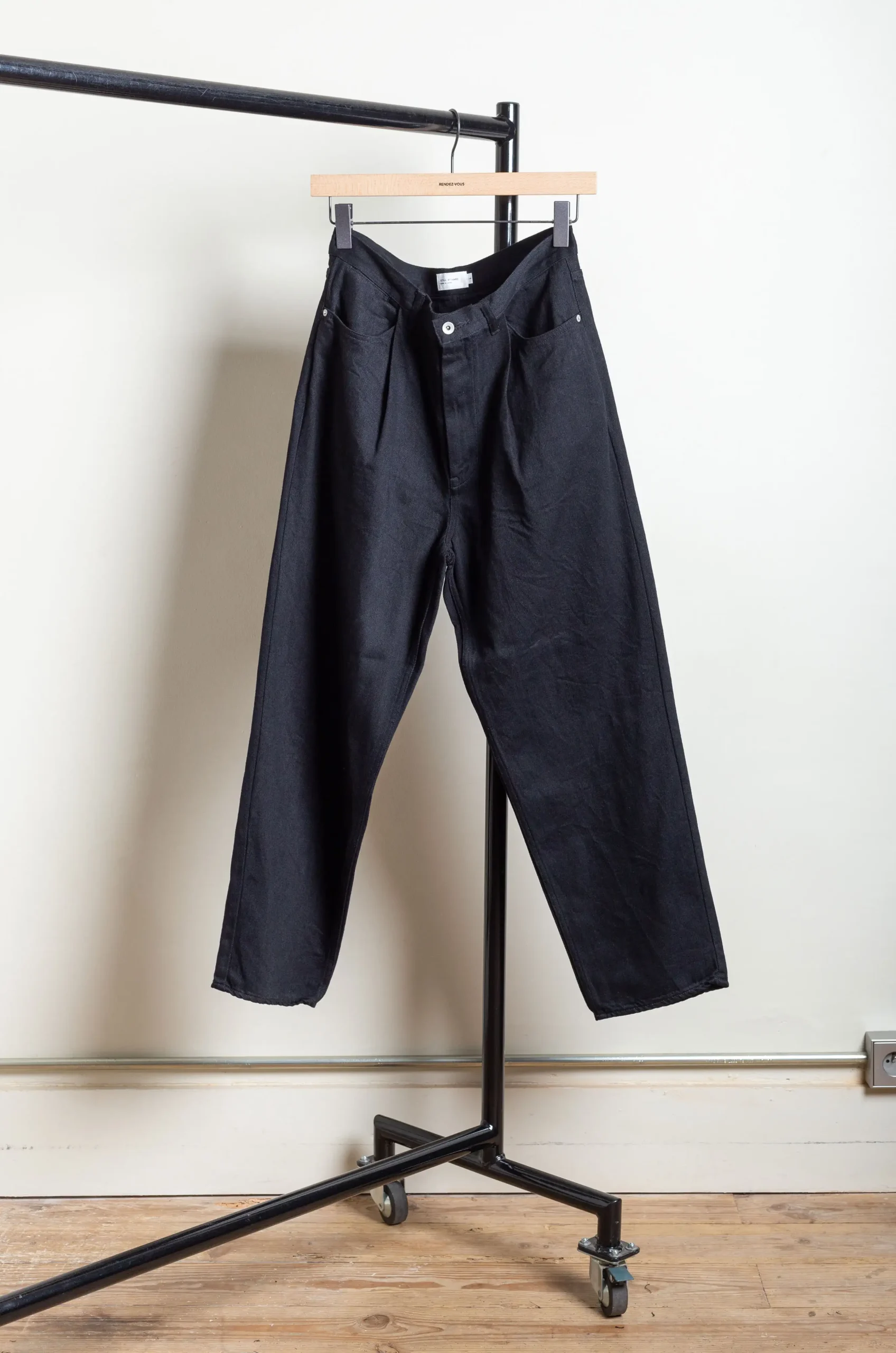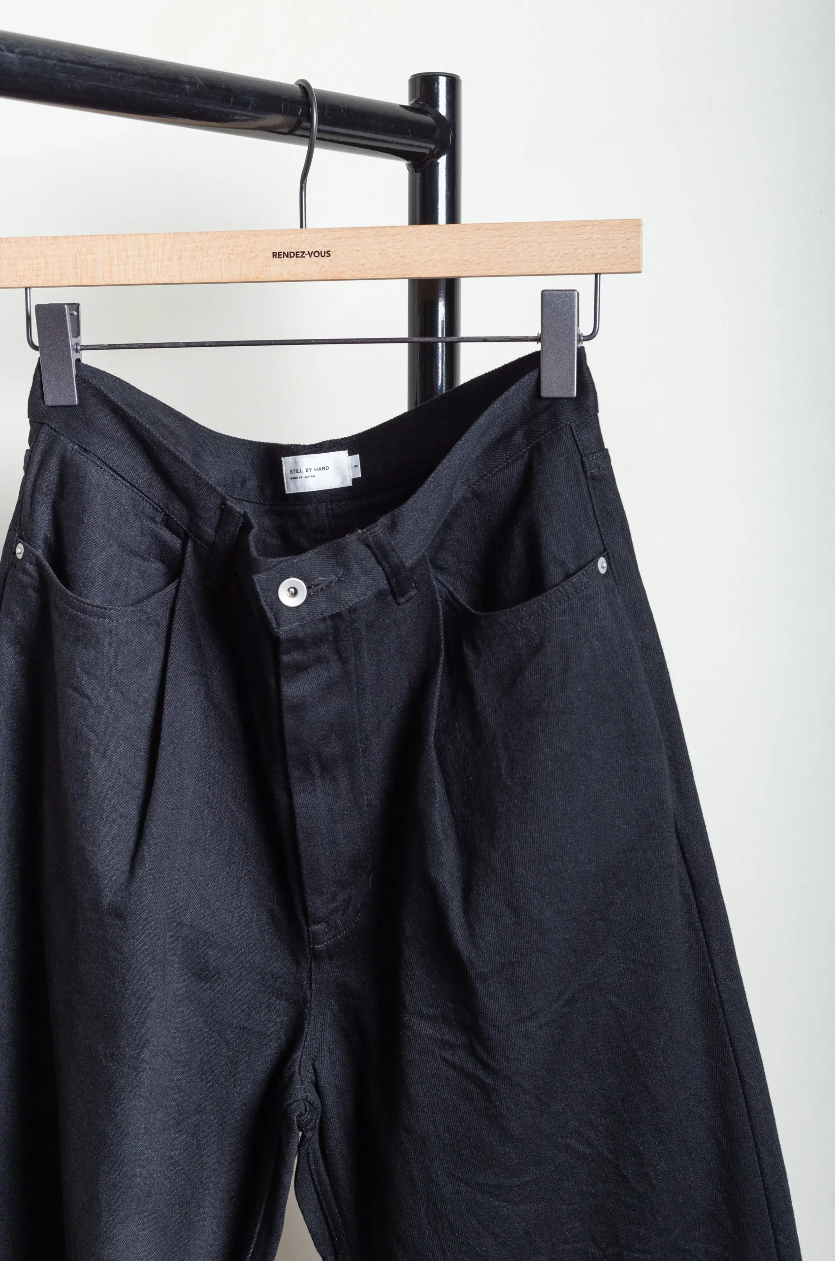 Still By Hand – 12oz Denim Deep Tuck Pants DN02243OS – Black